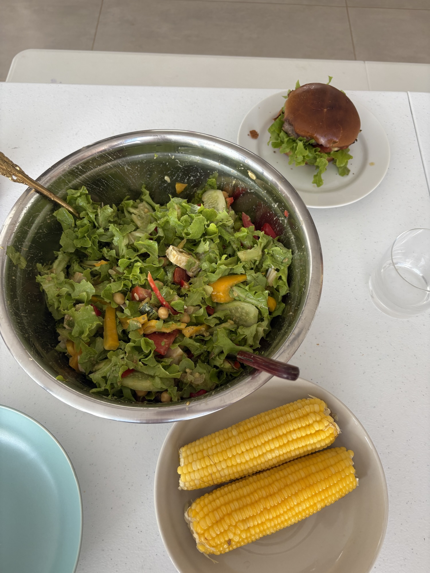 and a big salad to share. I love adding tons of roasted vegetables together with fresh vegetables, chickpea, avocado, and homemade dressing. I could feel my body getting nutrients!!!