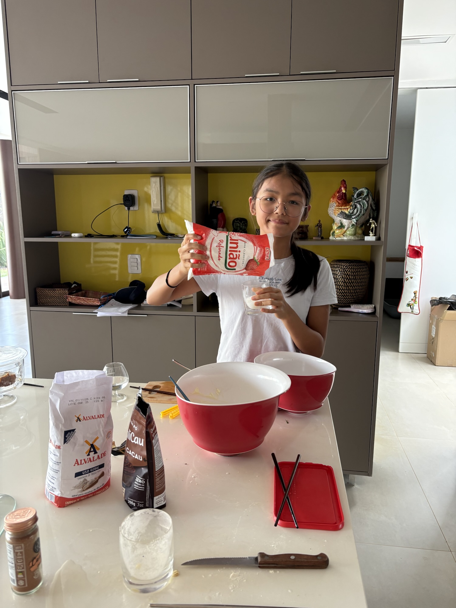 I spent the afternoon baking and cooking. Lizzy joined me and made strawberries kebab
