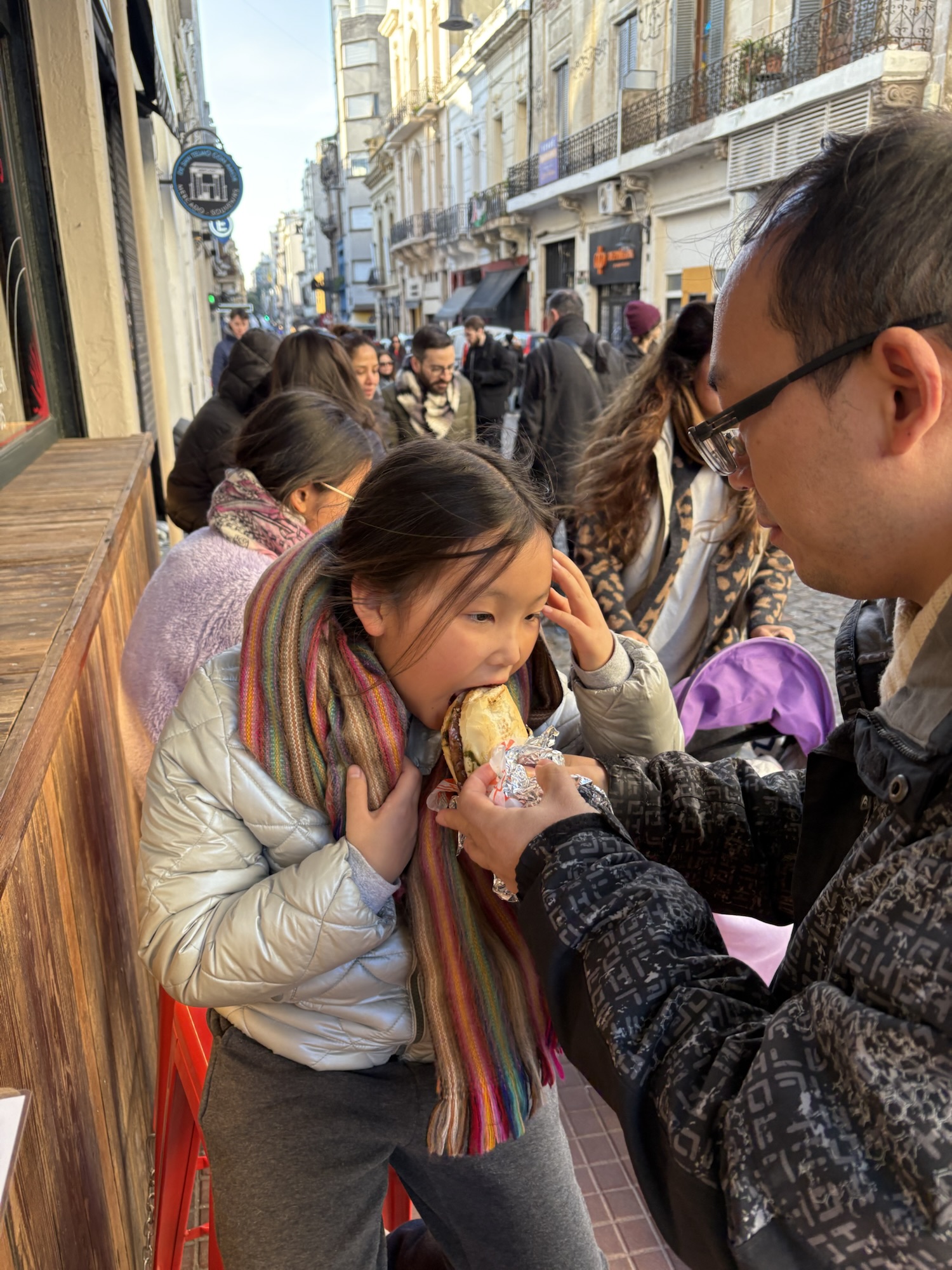 Our last day in Buenos Aires was wonderful. We went out for breakfast as my old favorite breakfast place (Cafe Martinez), Sofia tried medialuna with ham and cheese; we visited the playground one more time despite being too cold for me to stay still; we visited San Telmo feria. We all agreed that “un pedacito de mi quada en Argentina (a small piece of me stays in Argentina)” after the trip. And our love for Mafalda is a newly found love and obsession.