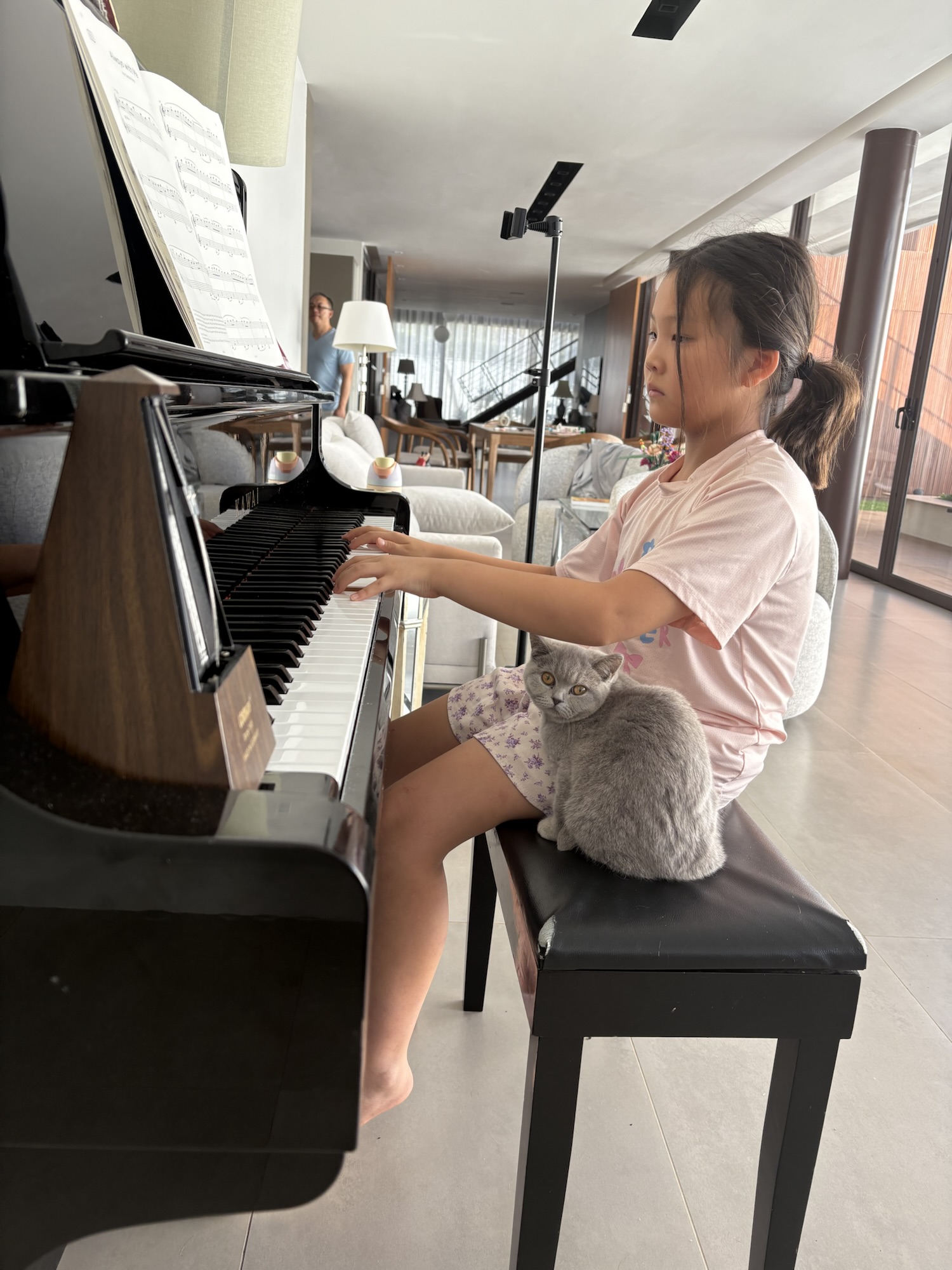 by Sunday, Bubble also felt more secure and does not hide all the time. She sit through Lizzy’s piano practice.