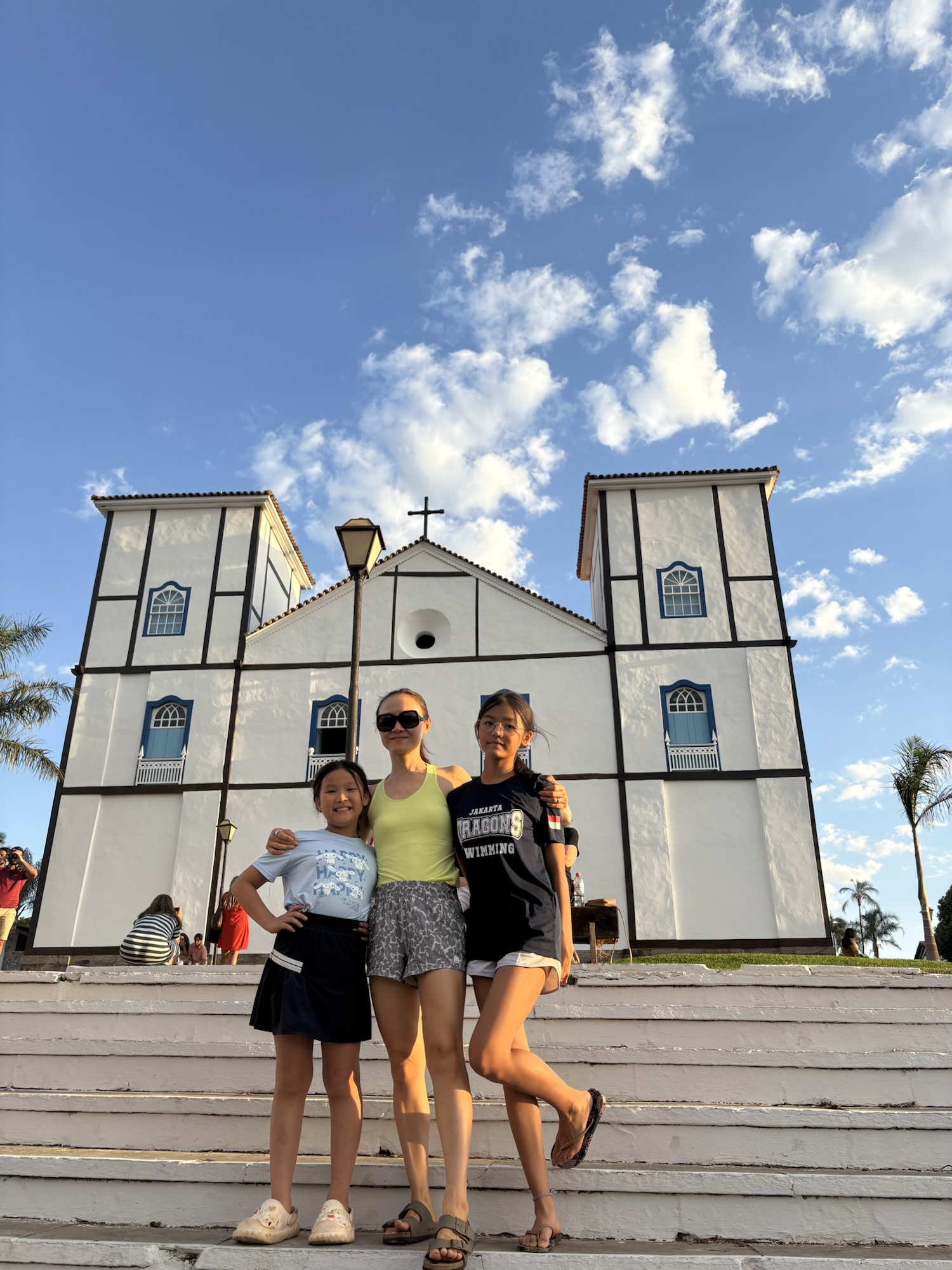 We went to visit the colonial town 2.5 hrs away from Brasilia this weekend. It was quite an adventure. We left home around 9:30am on Saturday (after my LR and Lizzy’s piano class), targeting to reach Rosario waterfall by 12pm the latest. That is the “biggest” waterfall in the area so I thought we should check that one out first. Two hours later, GPS suggested a shortcut so we followed. To our BIG surprise, it was an off-road, narrow, big and small rocks, rolling hills, almost undrivable, and the map keeps alerting me that there’s reported wild fire where we were heading. Halfway to the road we realized we should not have taken this road but it was too late. There’s only way out, keep moving forward. At certain points, we had to stop to remove the tree, down from the wild fire. There are many rocks, I walked along side the car to remove the really big ones. At that point, I was worried about the fire, husband was worried about flat tire. 30km took us almost 2 hours and we finally arrived to the waterfall around 1:30pm, relieved and exhausted due to the stress.