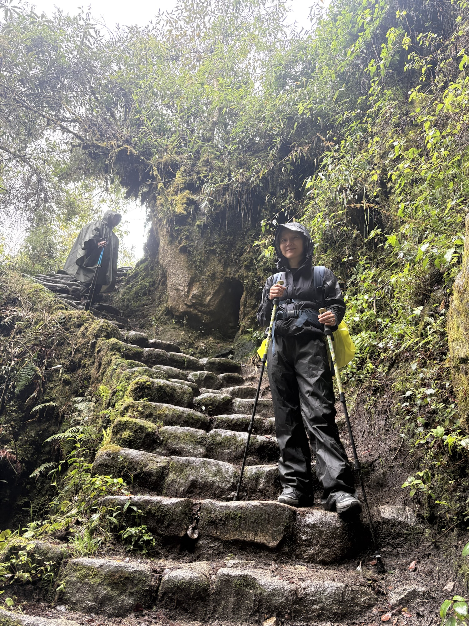Day 3 started at 4:30am again and it was a rainy day mostly. It was all descend, my “favorite”. Fortunately it was only half day hike and no rush so again I took my time, “cursing” the high stairs along the way.